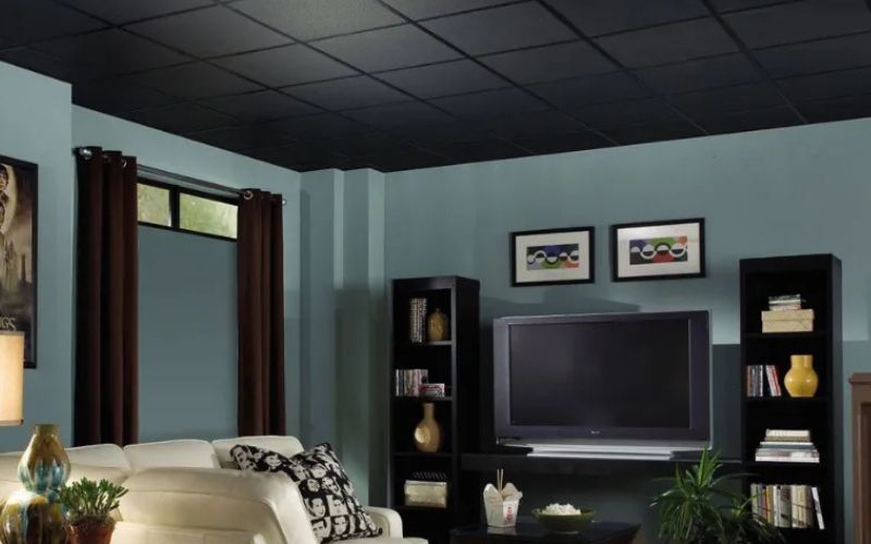 Không thể phủ nhận rằng sơn trần màu đen mang lại hiệu ứng thị giác mạnh. Màu đen hấp thụ ánh sáng, giúp giảm độ chói và tạo chiều sâu cho không gian. Trong phòng khách rộng hoặc không gian mở, điều này mang lại vẻ sang trọng, cao cấp.
