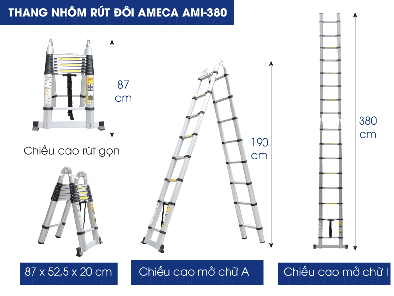 Thông số kỹ thuật thang xếp đôi đa năng AMECA AMI-380