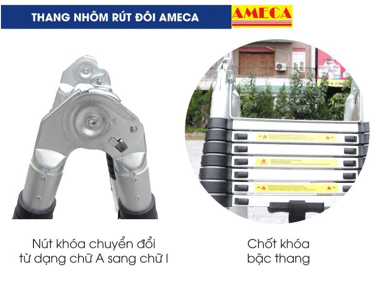 Đánh giá sản phẩm: Thang nhôm rút/xếp đôi đa năng chính hãng Ameca AMI-500 5m